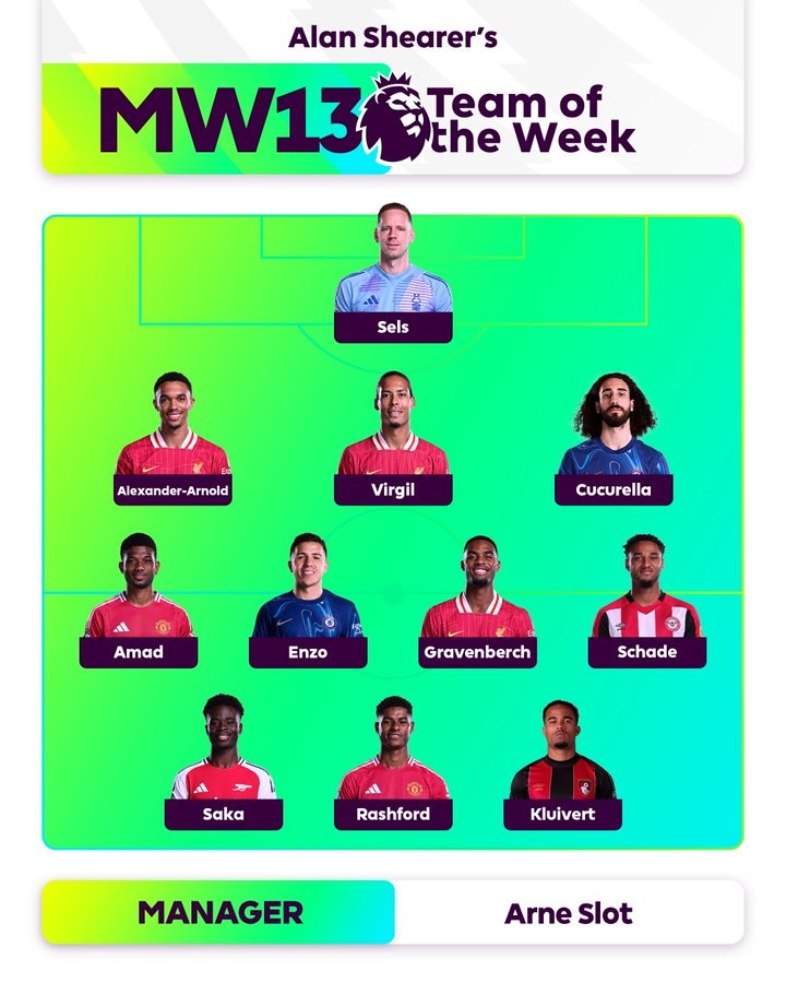 利物浦的赫拉芬贝赫以及布伦特福德的沙德也入选了本轮最佳阵容。赫拉芬贝赫在比赛中表现出色,展现了他在中场的多面能力,不仅防守稳健,还能够为球队做出关键的进攻贡献。沙德在布伦特福德的胜利中也有着不可或缺的作用,他的发挥为球队赢得了宝贵的三分。在前锋线上,阿森纳的萨卡、曼联的拉什福德以及伯恩茅斯的尤斯廷-克鲁伊维特入选了最佳阵容。萨卡在阿森纳的胜利中发挥出色,不仅进球,还为球队制造了多次得分良机。拉什福德和克鲁伊维特分别在自己的球队中展现了强大的得分能力,成为前锋线上的利器。本轮比赛最佳阵容的教练位置被利物浦的斯洛特获得。他带领球队在本轮比赛中取得胜利,球队表现出色,攻守达标,斯洛特的临场指挥也得到了肯定。他的战术理念和对球队的调教成果得到了球员和俱乐部的认可,是球队赢得胜利的重要功臣。